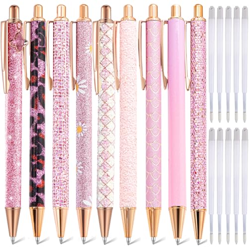 mumrap 9 st glittrande pennor för kvinnor fina pennor med 10 st svart bläck påfyllningar glitter vackra pennset för damer kontor skolgåvor (rosa)