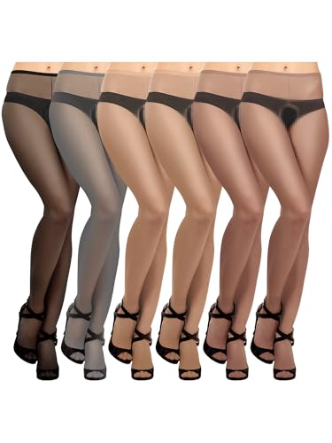 Geyoga 6 par strumpbyxor dam fina strumpbyxor elastiska transparenta sidenstrumpbyxor, Svart, kaffe, hudfärg, grå, one size