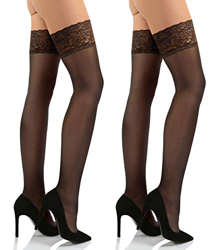 Sesto Senso 2 par Hållstrumpor Med Spets 15 DEN Fina Strumpor Kvinnor 3/4 M/L Svart