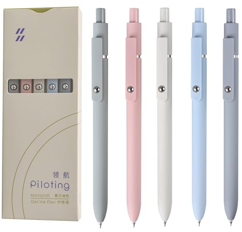 MengRan Piloterande gelbläckpennor, 0,5 mm fin spets, snabbtorkande bläck, söta fina pennor för kvinnor, gåvor för kvinnor (5 st Morandi-svart bläck)