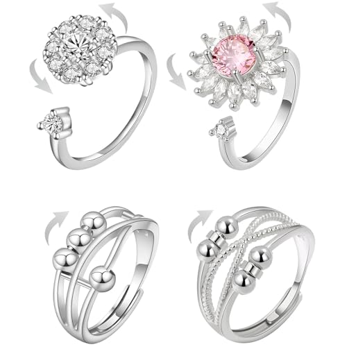 Gensmile Stresslindrande fidgetringar, humörring, 4 stycken stresslindrande ringar, vridbar ring med zirkonia, fina som presenter till kvinnor och män, Metall