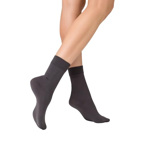 KUNERT Dam Sensual Cotton extra fina stickade strumpor, Antracit, 35-38 EU