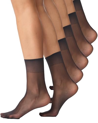 Endast 5-pack strumpor silkefina 15 DEN genomskinliga nylon fina strumpor silkeslena glänsande bred komfortlinning damer, svart, one size