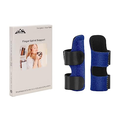 supregear Finger Splint Support, 2-pack Justerbar Återanvändbar Trigger Finger Splint Finger Brace med Avtagbar Aluminiumstång för Pek/Mellan/Ring/Rosfinger, Blå