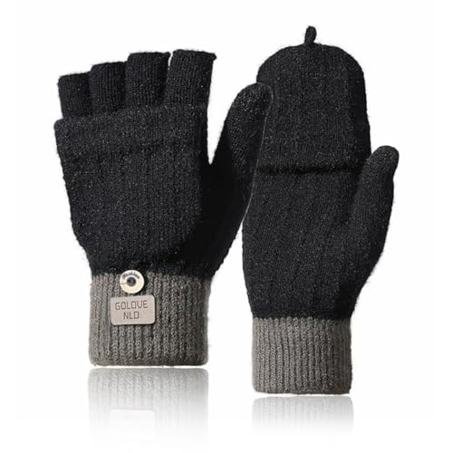flintronic Vinterhandskar, fingerlösa vantar, varma stretchiga handskar för män och kvinnor, konvertibla tvåformskonvertibla vantar, för skidåkning, cykling, körning, sport utomhus, Svart (halv finger