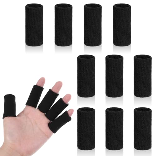 Dimeho Fingerskydd, 10 stycken elastiskt fingerbandage, sport, justerbart stretchigt fingerskydd, fingerskydd, kompression, fingerstöd, för fingersmärta (svart)