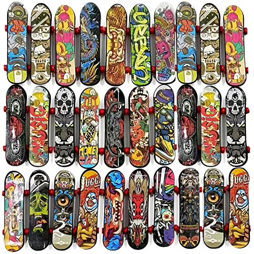 LYQQY Fingerskateboards, 30 stycken fingerskateboardset mini fingerboards skateboards spel för barn festpåse fyllare, barns födelsedagspresenter, nyckelband dekoration, 9,5 cm (slumpmässigt mönster)