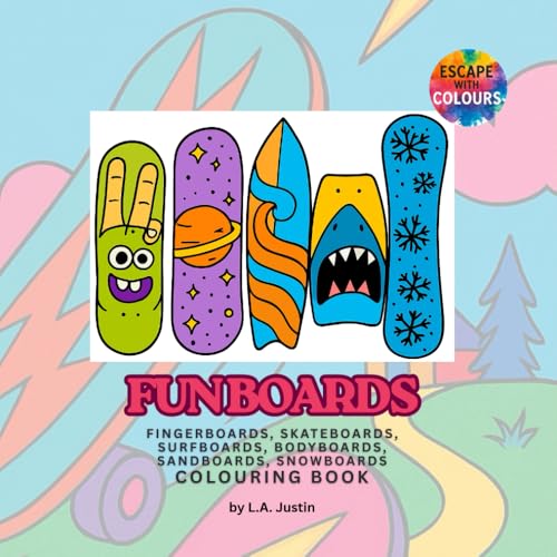 FUN BOARDS - Colouring Book: Escape with Colours into the energetic world of fingerboards, skateboards, surfboards, bodyboards, sandboards, ... relief designs. | For adults and teens.