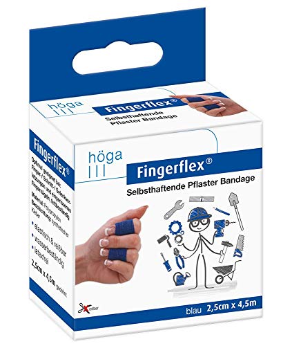 Fingerflex blå, 2,5 cm x 4,5 m sträckt, självhäftande plåster bandage/fingerförband, 2-pack, stor