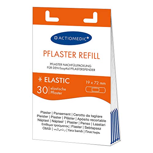 ACTIOMEDIC I ELASTIC plåster påfyllningsförpackning, 30 stycken, Kompatibel med EasyAid plåsterautomat, Allergivänliga och elastiska, Fingerplåster för barn och vuxna