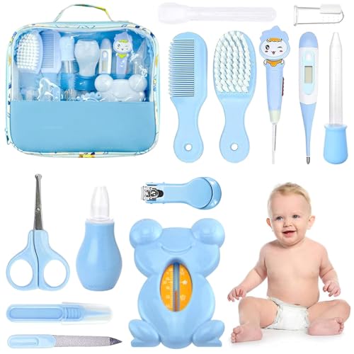HyAdierTech Baby Care Set, 13-delat babyvårdsset för baby daglig vård baby hälsovård kit med termometer nässugare pipett feeder nagelhårset, fingertandborste näspincett