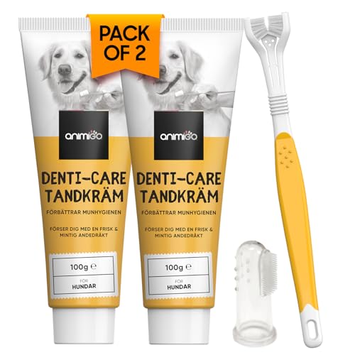animigo Tandkräm för Hund - 2x 100g Hundtandkräm med Hundtandborste & Fingertandborste - Mot Tandsten & Dålig Andedräkt - Tandvårdsset för Hundar med Naturliga Ingredienser för Tänder & Tandkött