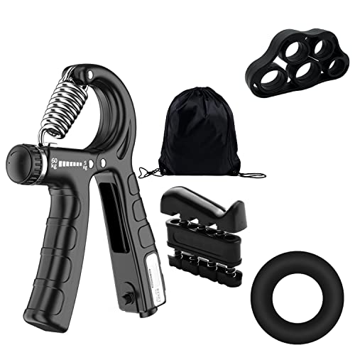 YSDYY 4-delat greppstärkarset med 1-delad dragficka, justerbar greppstyrka av R-typ, smart räkningsgrepp, fingerstyrka, fingerträning för idrottare, musiker (svart)