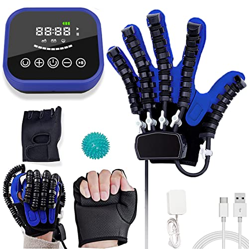 TOYIFEI Rehabilitering Robothandskar, Rehabiliteringsrobothandske, Fingerskena För Rehabilitering Av Handbesvär, Fingerträning(Size:M-höger,Color:Blå)