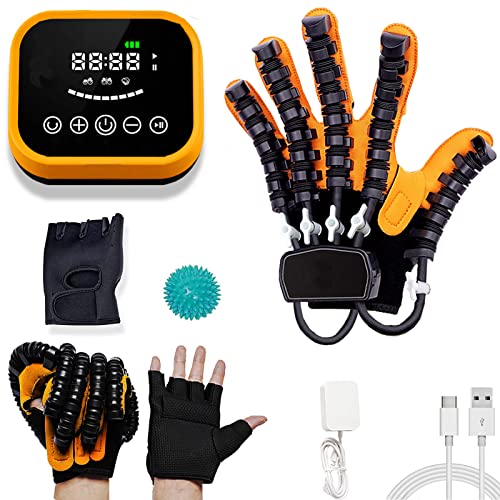 TOYIFEI Rehabilitering Robothandskar, Rehabiliteringsrobothandske, Fingerskena För Rehabilitering Av Handbesvär, Fingerträning(Size:L-vänster,Color:Orange)