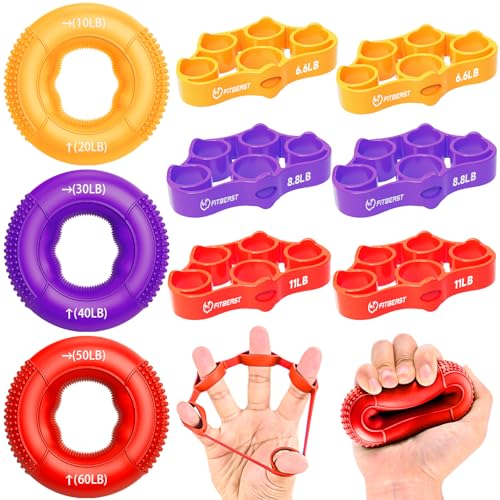 FitBeast Greppstyrketränare, Handtränare 9-delat Kit för Rehabilitering, Fingerträning och Handstyrka Handgrepp Stärkare för Klättrare, Äldre och Kontorsarbetare