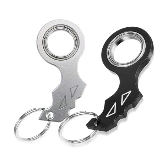Amacoam Nyckelring, spinner 2 stycken, nyckelring, bärbar, fingerspinner nyckelring, ring, fidget-spinner för fingerträning, barn och vuxna, ångestlindring, nyckel spinner, svart, M