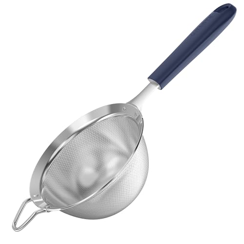 U-Taste finmaskig sil: Kökssil av 18/8 rostfritt stål, medelstor metallsil med nitade, robust silikonhandtag för siktning av mjöl, dropp av te, ris, Quinoa (midnattsblå, 12 cm)