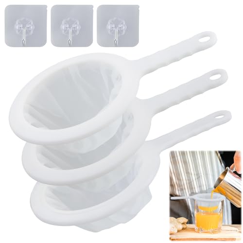 3 stycken kökssil plast (100/200/400 mesh) extra finmaskig sil fin nylonmaskor fin sil med handtag, lämplig för filtrering av yoghurt, mjölksyrevin och honung (med 3 krokar)