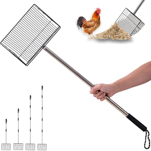 Stor kycklingspade extra bred 25 cm, längd: 170 cm, kycklinghus räfspade, tillbehör, kycklingskyffel med 7 mm finmaskig sil kycklingstallspade för sand