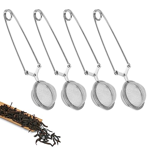 4 DELAR tetänger i rostfritt stål, Ø 4,5 cm, tesil för löst te, tetänger med finmaskig sil, teboll för optimal njutning av te