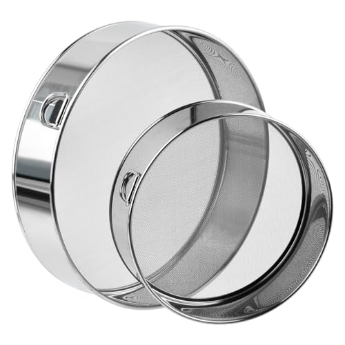 BATINO 2 stycken mjölsil rostfritt stål mjöl sju fin mjölsil finmaskig professionell mjölsil 15/20 cm fin sil set mjölsil 40/60 mesh bakning sil för ris spannmål bönor frukt grönsaker (silver)