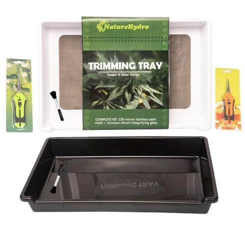 Mayaadi-Home Trim bricka bin trimskål örtväxter torrsil set pollensil blommor 150 mikron finmaskig sil och 2 trimmsaxar torrsil vit-svart