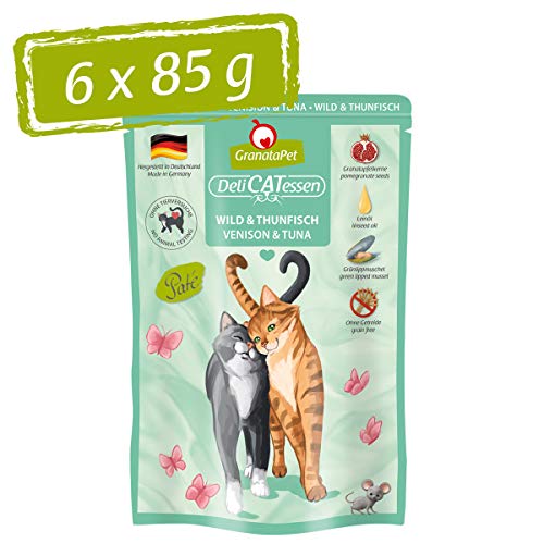 GranataPet Våtfoder Delicatessen vilt och tonfisk, 6 x 85 g, för katter, kattmat för finsmakare, foder utan spannmål och utan sockertillsatser