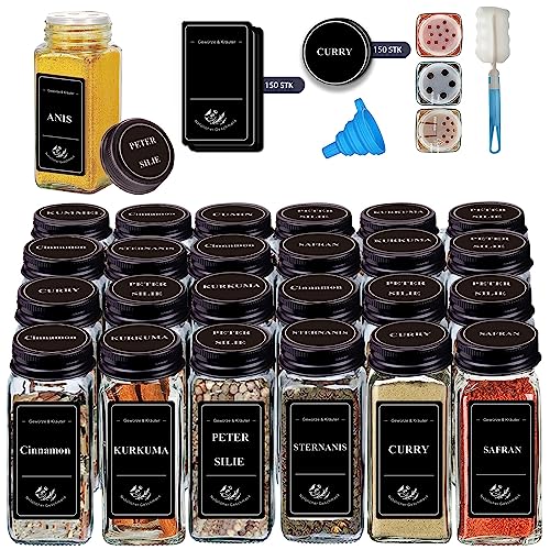 Danillous Premium kryddburks-set [24 st 120 ml] med etiketter och ströinsats - fyrkantiga kryddburkar för perfekt kryddförvaring - snygg svart design för krävande finsmakare