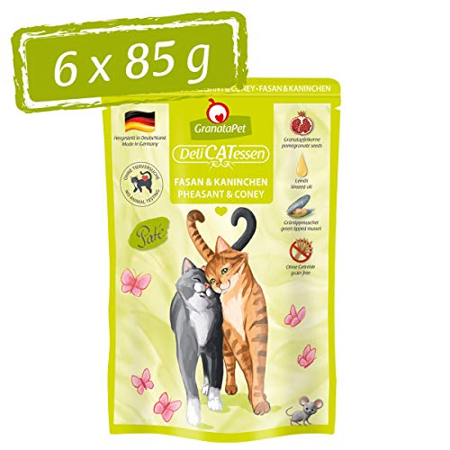 GranataPet Våtfoder Delicatessen fasan och kanin, 6 x 85 g, för katter, kattmat för finsmakare, foder utan spannmål och utan sockertillsatser