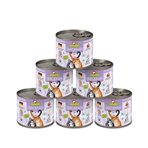 GranataPet Våtfoder Delicatessen anka och fjäderfä, 6 x 200 g, för katter, kattmat för finsmakare, foder utan spannmål och utan sockertillsatser