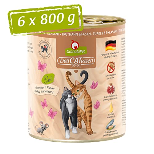 GranataPet Våtfoder Delicatessen kalkon och fasan, 6 x 800 g, för katter, kattmat för finsmakare, foder utan spannmål och utan sockertillsatser