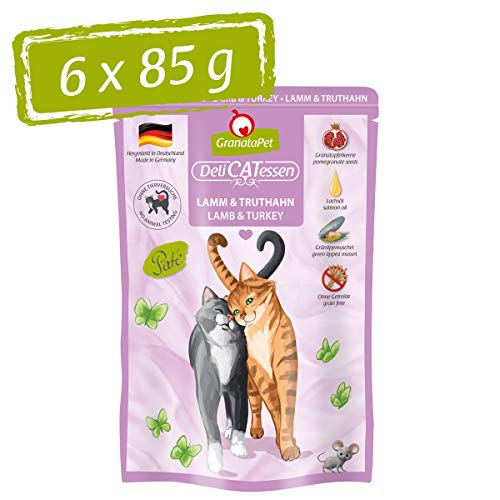 GranataPet Våtfoder Delicatessen lamm och kalkon, 6 x 85 g, för katter, kattmat för finsmakare, foder utan spannmål och utan sockertillsatser