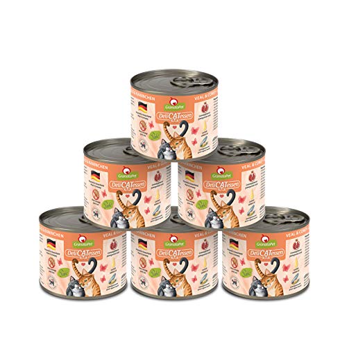 GranataPet Våtfoder Delicatessen kalv och kanin, 6 x 200 g, för katter, kattmat för finsmakare, foder utan spannmål och utan sockertillsatser