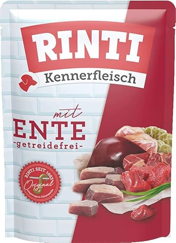 RINTI – finsmakare kött | våt mat med 70% kött för vuxna hundar. Spannmålsfritt helfoder i burk utan soja, färgämnen och konserveringsmedel | 10 x 400 g anka
