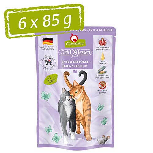 GranataPet Våtfoder Delicatessen anka och fjäderfä, 6 x 85 g, för katter, kattmat för finsmakare, foder utan spannmål och utan sockertillsatser
