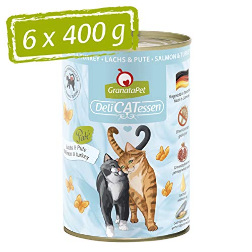 GranataPet Våtfoder Delicatessen lax och kalkon, 6 x 400 g, för katter, kattmat för finsmakare, foder utan spannmål och utan sockertillsatser