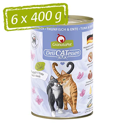 GranataPet Våtfoder Delicatessen tonfisk och anka, 6 x 400 g, för katter, kattmat för finsmakare, foder utan spannmål och utan sockertillsatser