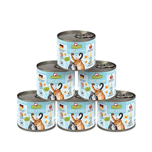 GranataPet Våtfoder Delicatessen lax och kalkon, 6 x 200 g, för katter, kattmat för finsmakare, foder utan spannmål och utan sockertillsatser