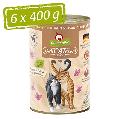 GranataPet Våtfoder Delicatessen kalkon och fasan, 6 x 400 g, för katter, kattmat för finsmakare, foder utan spannmål och utan sockertillsatser