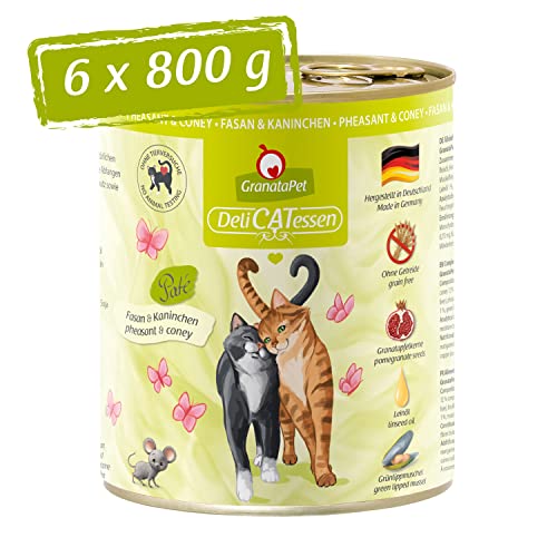 GranataPet Våtfoder Delicatessen fasan och kanin, 6 x 800 g, för katter, kattmat för finsmakare, foder utan spannmål och utan sockertillsatser