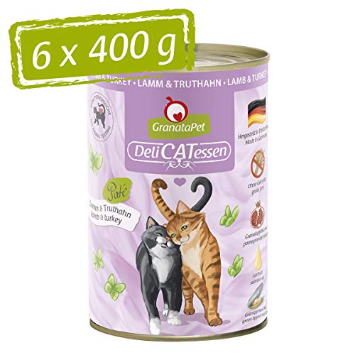 GranataPet Våtfoder Delicatessen lamm och kalkon, 6 x 400 g, för katter, kattmat för finsmakare, foder utan spannmål och utan sockertillsatser