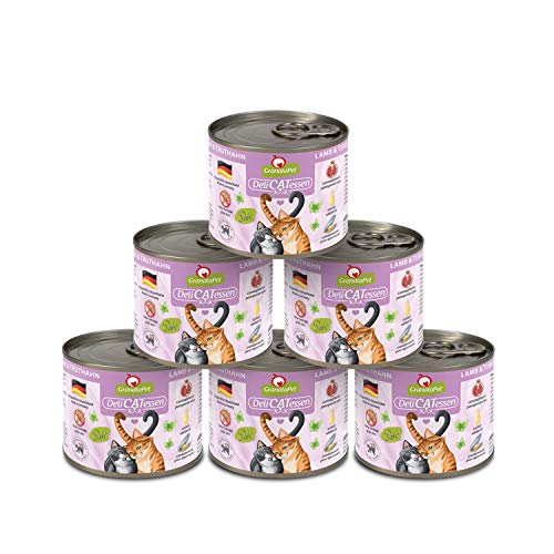 GranataPet Våtfoder Delicatessen lamm och kalkon, 6 x 200 g, för katter, kattmat för finsmakare, foder utan spannmål och utan sockertillsatser