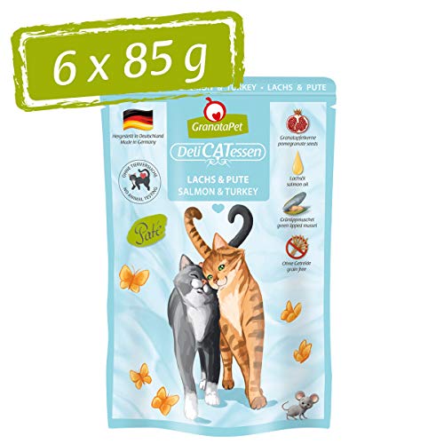 GranataPet Våtfoder Delicatessen lax och kalkon, 6 x 85 g, för katter, kattmat för finsmakare, foder utan spannmål och utan sockertillsatser