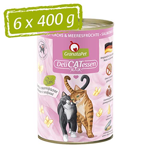 GranataPet Våtfoder Delicatessen lax och skaldjur, för katter, kattmat för finsmakare, foder utan spannmål och utan sockertillsatser, 6 x 400 g