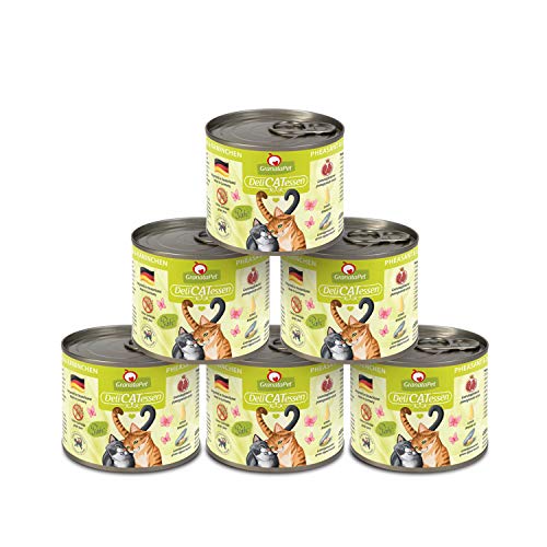 GranataPet Våtfoder Delicatessen fasan och kanin, 6 x 200 g, för katter, kattmat för finsmakare, foder utan spannmål och utan sockertillsatser