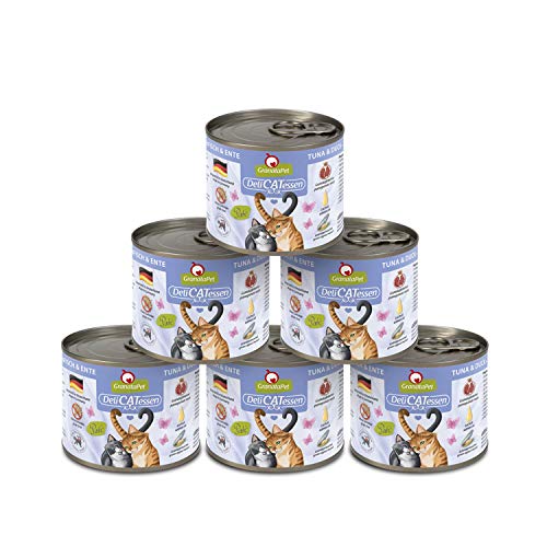 GranataPet Våtfoder Delicatessen tonfisk och anka, 6 x 200 g, för katter, kattmat för finsmakare, foder utan spannmål och utan sockertillsatser