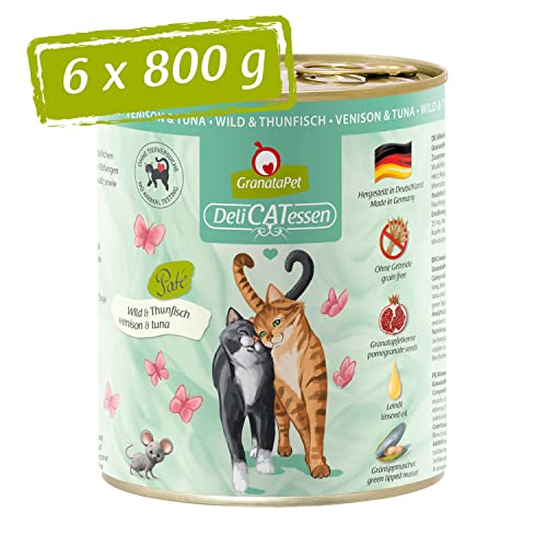 GranataPet Våtfoder Delicatessen vilt och tonfisk, 6 x 800 g, för katter, kattmat för finsmakare, foder utan spannmål och utan sockertillsatser