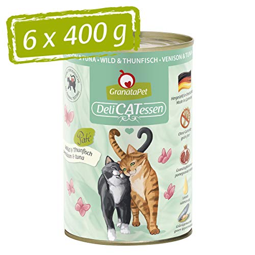 GranataPet Våtfoder Delicatessen vilt och tonfisk, 6 x 400 g, för katter, kattmat för finsmakare, foder utan spannmål och utan sockertillsatser