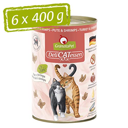 GranataPet Våtfoder Delicatessen kalkon och räkor, 6 x 400 g, för katter, kattmat för finsmakare, foder utan spannmål och utan sockertillsatser